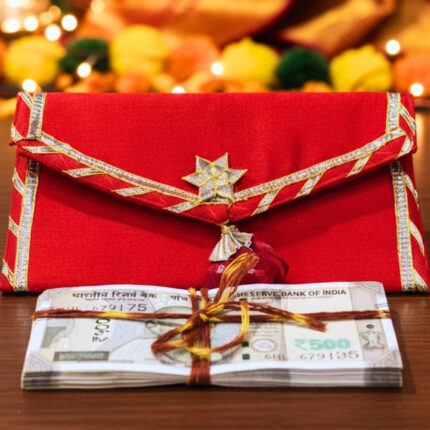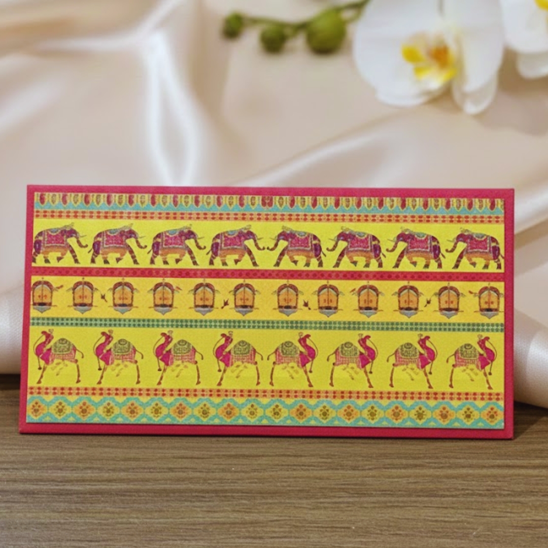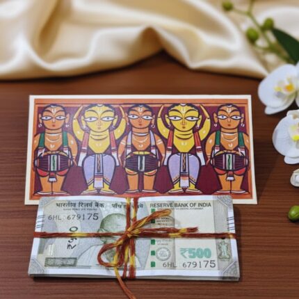A handcrafted cash envelope made with premium 280GSM paper and finished with vibrant Indian folk art. Designed to add elegance and tradition to your wedding and festive gifting.